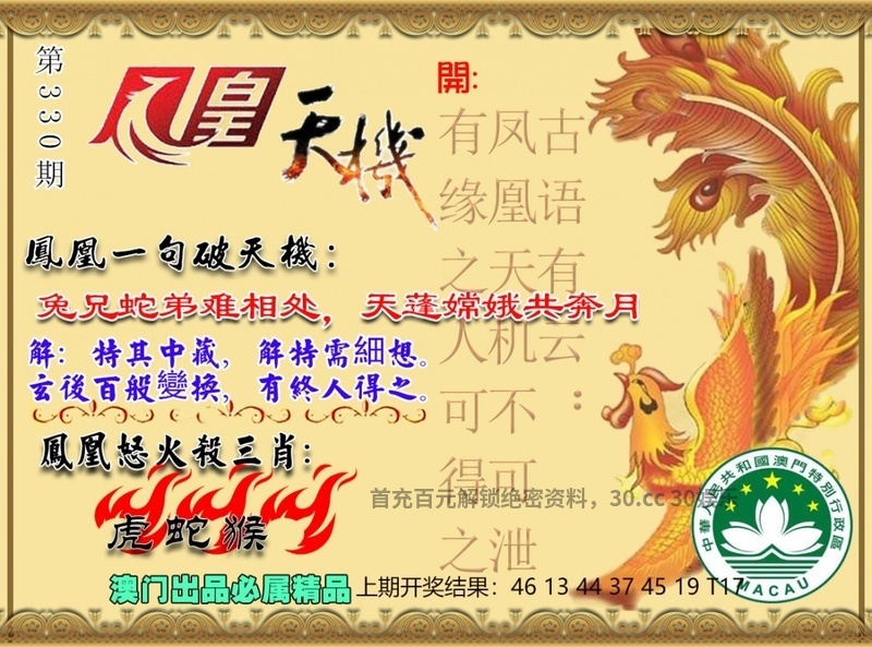 | 334期:九肖 | 鸡羊狗猪猴鼠马虎蛇 | 猴46中 |