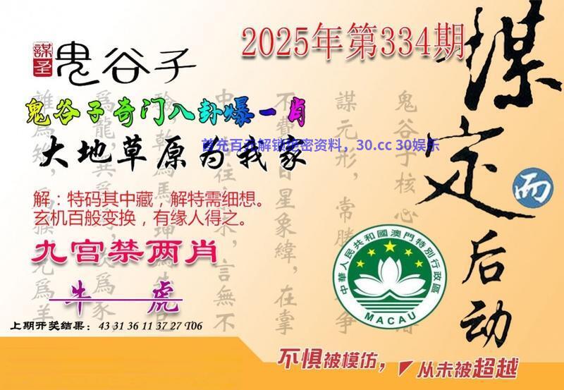 | 335期:澳彩鬼谷子【开:發00】 综合解:资料准备更新中 综合特肖:资料准备更新中 主攻特码:资料准备更新中 |
